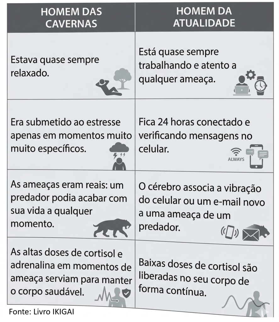 Na comparação com os nossos ancestrais, apresentada no livro que gosto muito e recomendo, IKIGAI (que com certeza aprofundaremos em outro momento), observa-se essa mudança drástica de comportamento, que na maioria das vezes é sutil e passa despercebida, mas com muitas consequências prejudiciais para profissionais de todas as áreas, gêneros e idades, que não sabem lidar com isso, pois estamos falando de algo que impacta toda a sociedade.